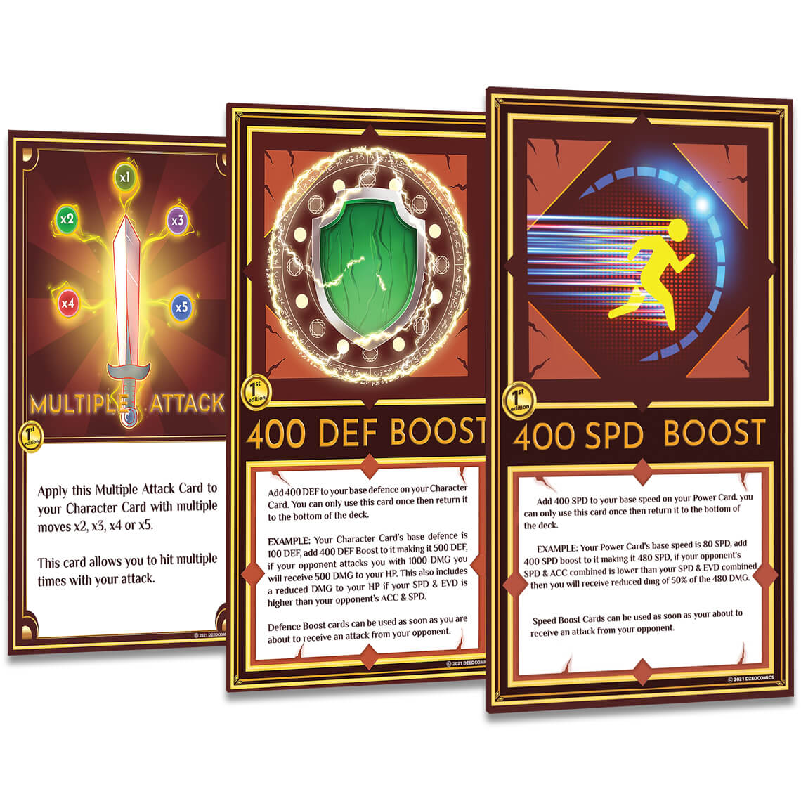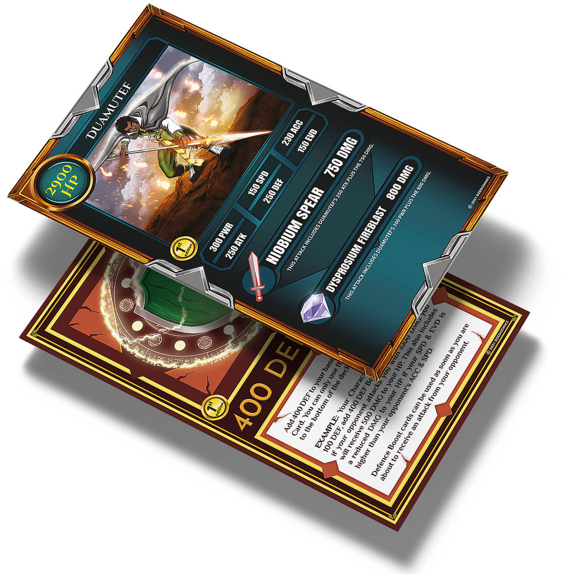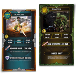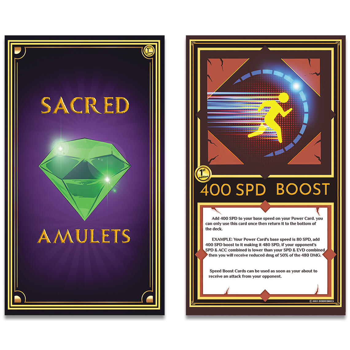 The Sacred Amulets Playing Cards feature completely custom artwork in every aspect of the design, play a one vs one battle, Sacred Duo or Sacred Trio battle.